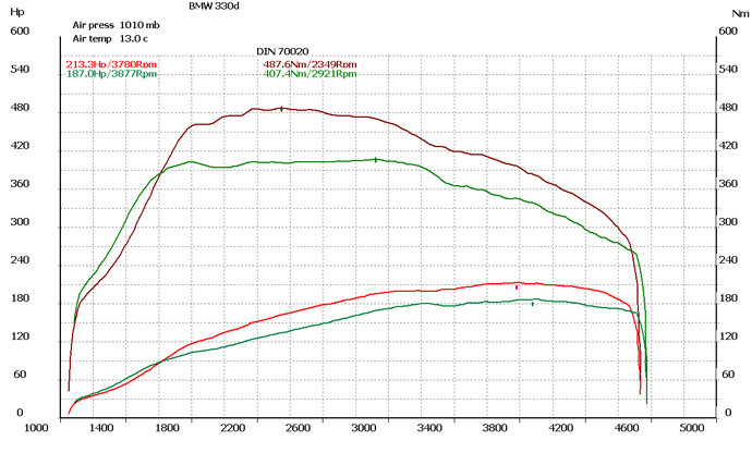 Wykres z pomiarów na hamowni przed oraz po modyfikacji: