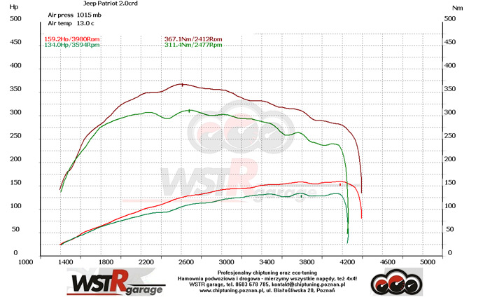 Wykres z pomiarów na hamowni przed oraz po modyfikacji: