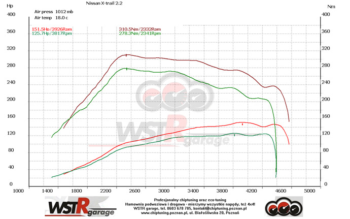 Nissan X-trail 2.2 dci 136KM Modyfikacja za pomocą zewnętrznego, strojonego przez nas na hamowni, modułu.