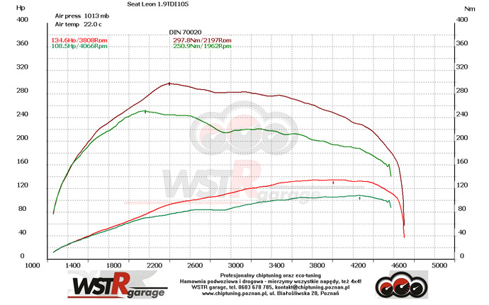 Wykres z pomiarów na hamowni przed oraz po modyfikacji: