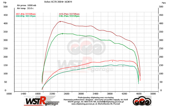 Wykres z pomiarów na hamowni przed oraz po modyfikacji: